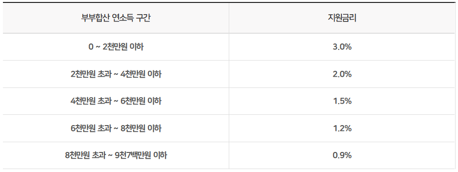 ○ 연소득에 따른 이자지원금리: 최대 연 3.0% 이하