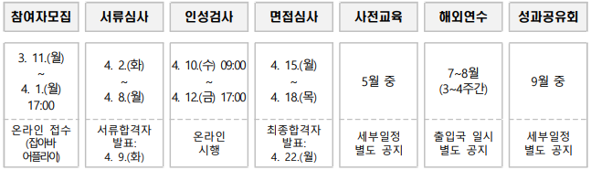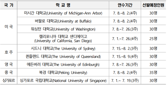 * 총모집인원, 대학별 선발인원, 연수기간 등은 변경될 수 있음