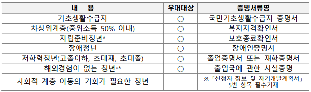(우대 대상자일 경우) 우대 대상 증빙서류