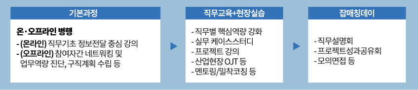 중장년이 중소기업·스타트업으로 재취업할 수 있도록 집중 훈련시키는 이직지원 사업입니다.