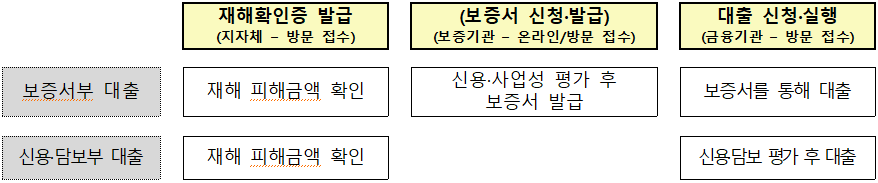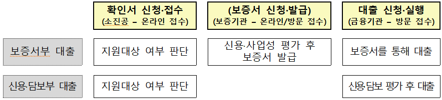 ※ 신용보증서(지역신용보증재단)를 담보로 대출 신청하는 소상공인은 보증기관과 사전 보증상담을 통해 보증가능 한도 확인 후 신청·접수 바랍니다.