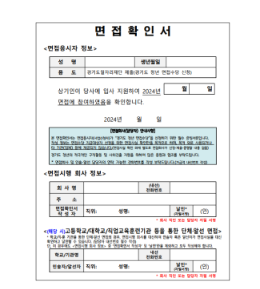 | ① 면접 안내(통보)문만 제출한 경우 | 미선정 | 면접 당일 참석여무 ↓ 면접응시 증빙서류를 함께 제출해야 함 |