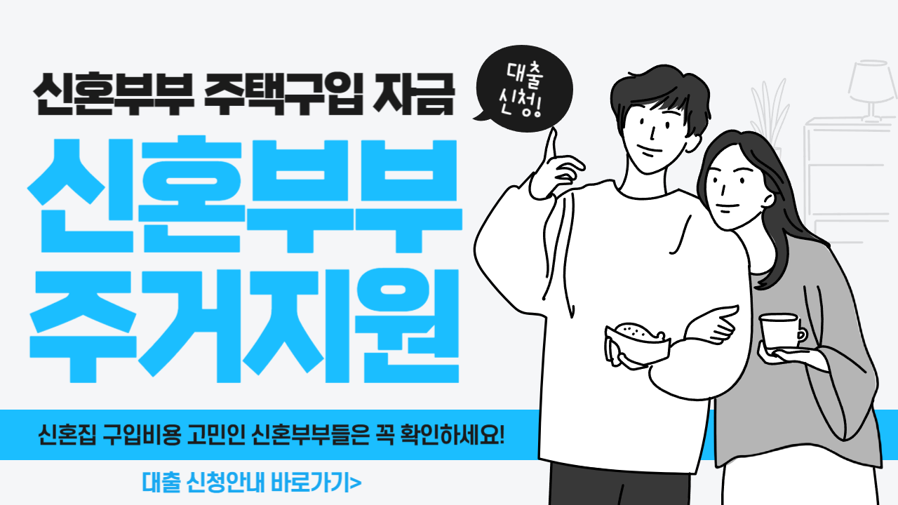 신혼집 구입비용이 고민인 신혼부부에게 신혼부부 전용 주택구입자금을 대출해 드립니다.